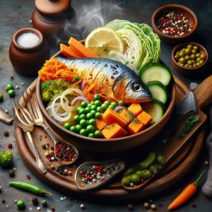 Meal (8-10am): Boiled sweet potatoes, fish, and vegetable sauce (lettuce, cabbage, onion, carrots, green peas, spices)